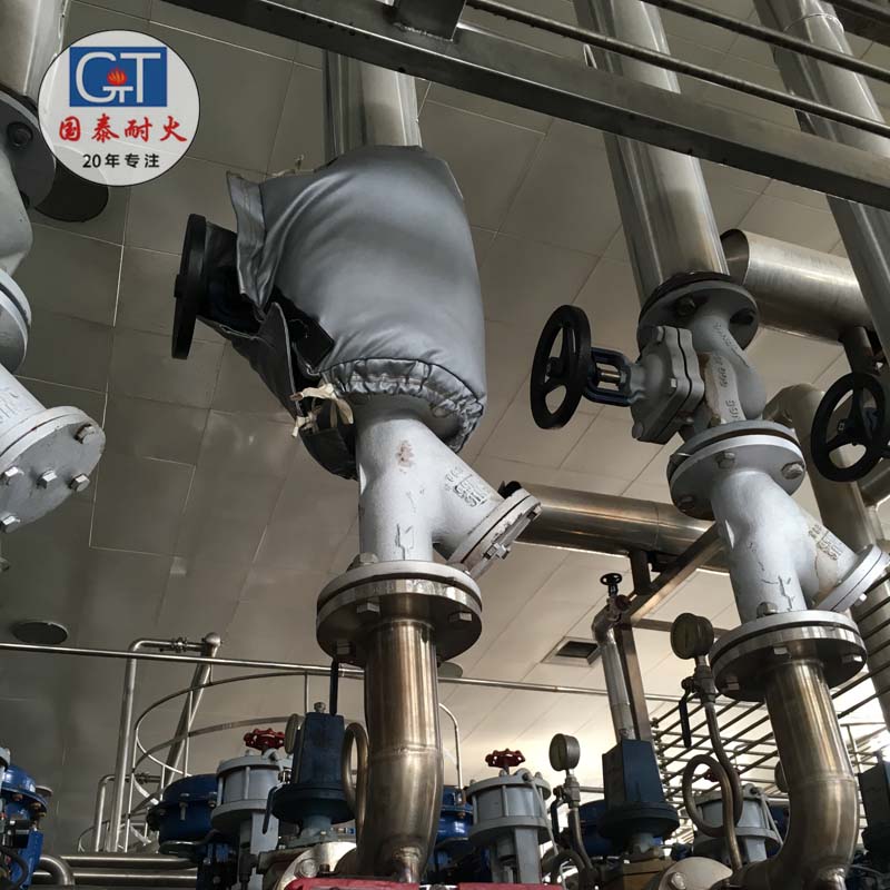 德清國泰生產的保溫套,根據管道或設備的具體形狀及其使用環境,經過精心設計,測繪后,通過特殊工藝制作而成。它可在不同溫度,不同形狀的管道和各種冷熱設備上使用。對于要經常拆卸,維修保養,清洗的管道設備尤為適用。其綜合經濟效益好。