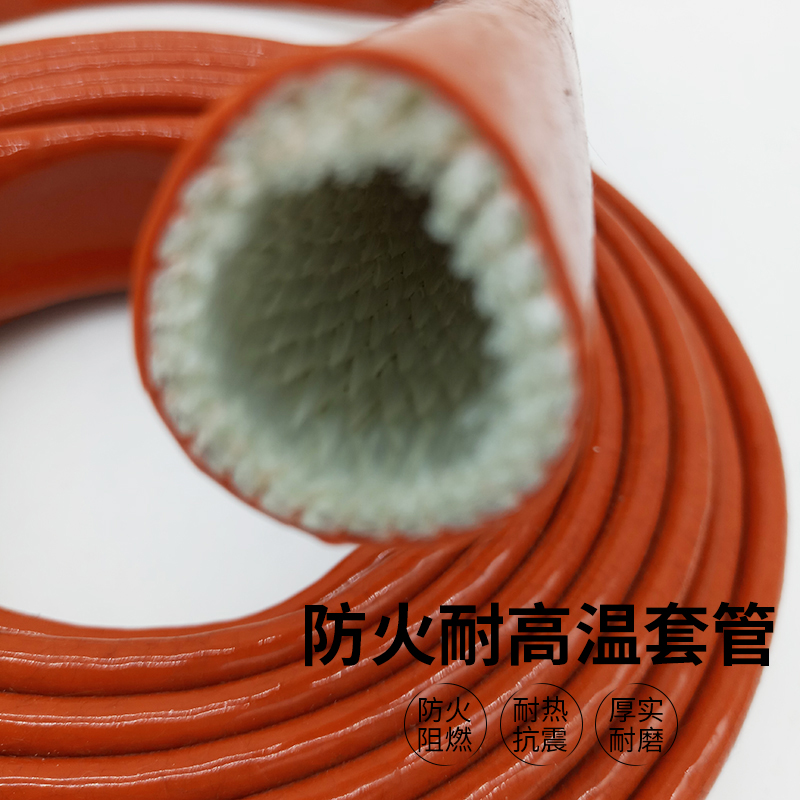 高溫套管以高膨松性玻璃纖維之套管所制成,并覆以厚實的氧化鐵紅硅膠,其能阻擋熔鐵噴濺,且不受高溫和火焰所損壞,這些特性使其適用于保護惡劣環境下的軟管、纜線和管路。