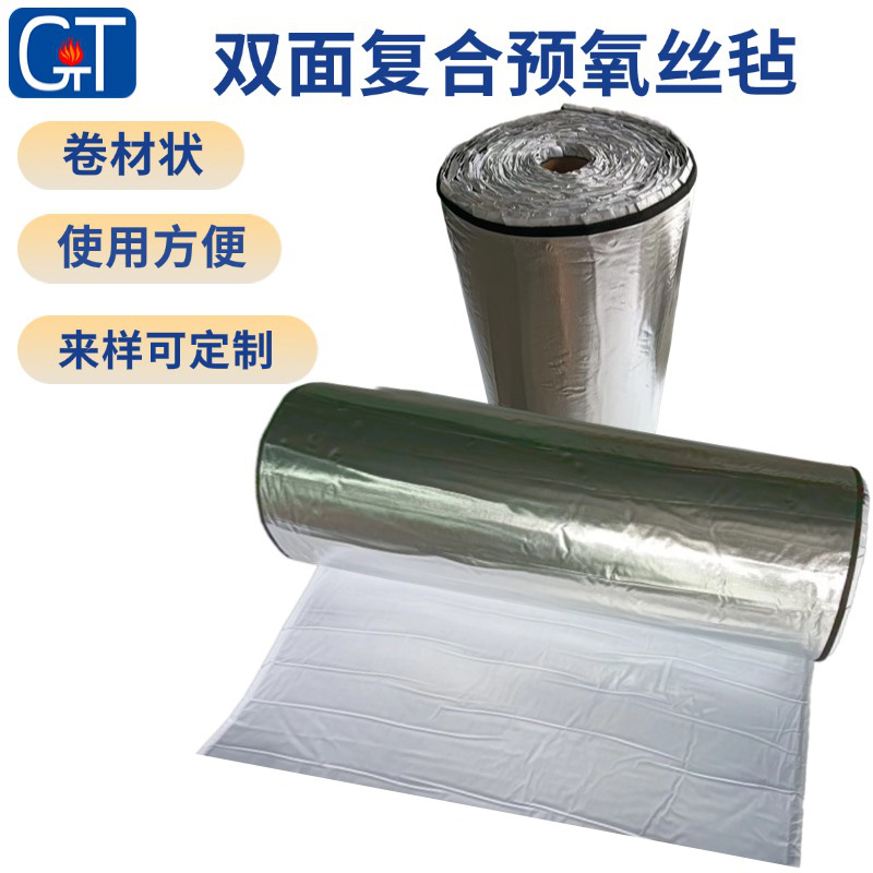 耐高溫碳纖維防火毯背膠鋁箔雙面復合預氧絲針刺氈,耐高溫450度左右,可切割成條狀,使用在門窗設備縫隙密封領域,當火花噴濺,耐化學性能好,抗酸堿。廣泛應用于工業建筑、航空領域等。
